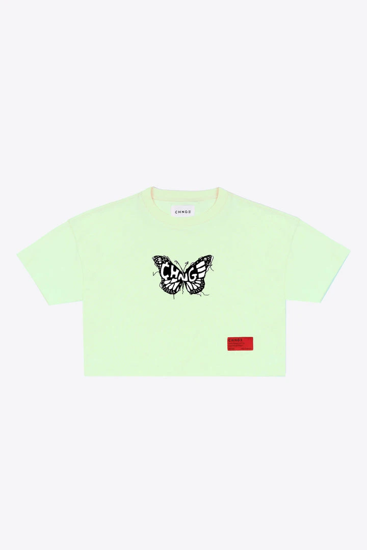 Sree Santhosh Best Selling CHNGE Logo Butterfly Crop Top (Citron)