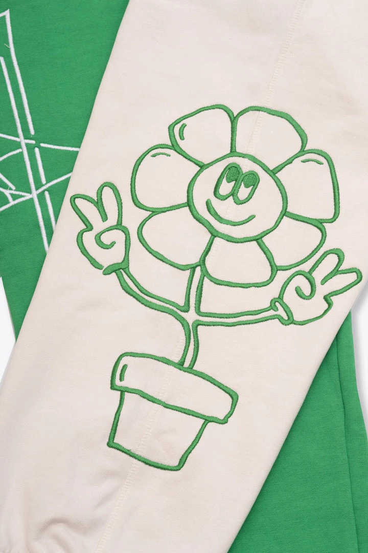This garment is made from a 100%, GOTS certified, heavyweight, 14oz organic cotton fabric featuring a french terry finish.