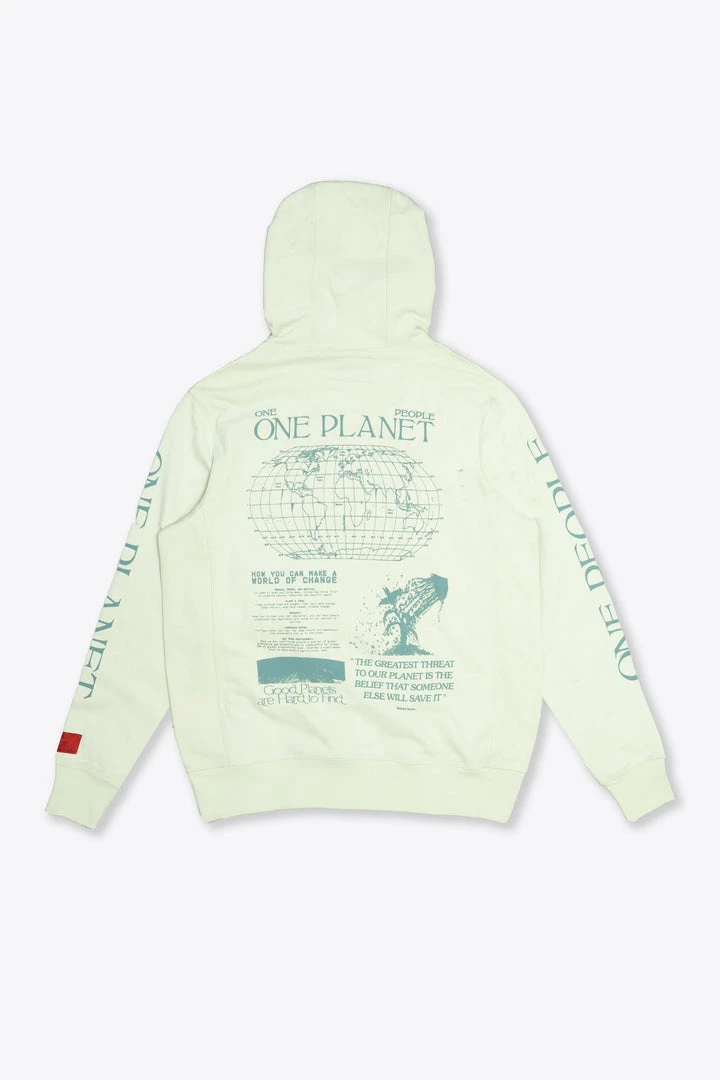 Made from 100% recycled materials, the fabric of this hoodie is derived from 17.2 plastic bottles and over 0.85 LB of recycled cotton fabric scraps.
