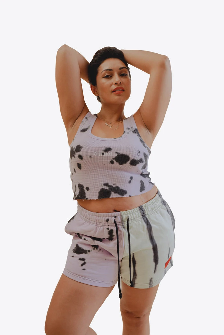 Sree Santhosh Best Selling Splotch Tie Dye Logo Ribbed Tank (Violet)