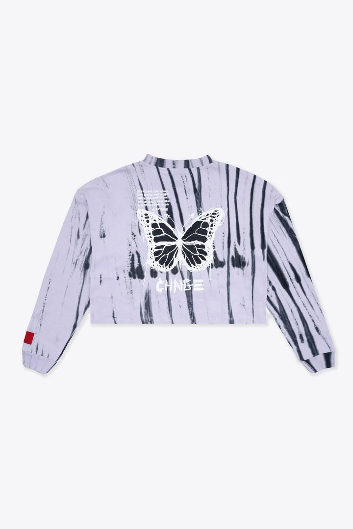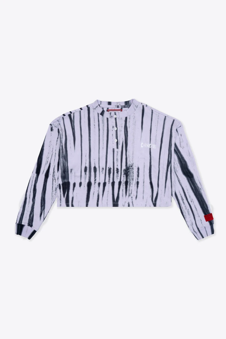 Sree Santhosh Best Selling Tie Dye Butterfly L/S Cuffed Henley Crop (Violet)