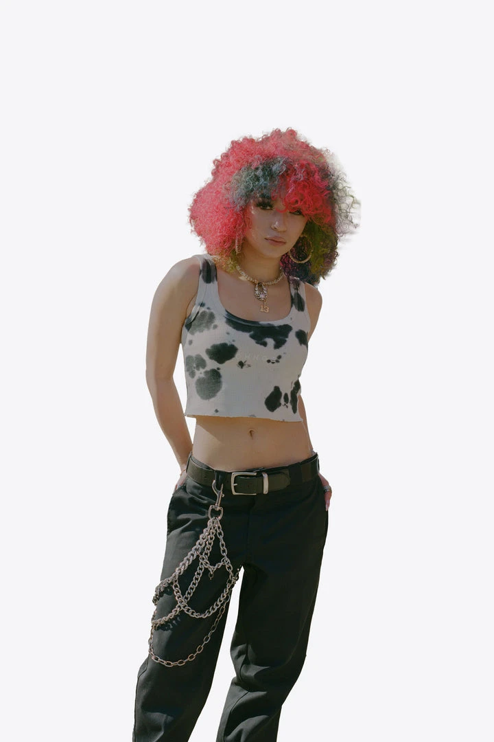 Sree Santhosh Best Selling Tie Dye Logo Ribbed Tank (Cookies & Cream)