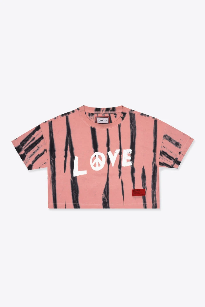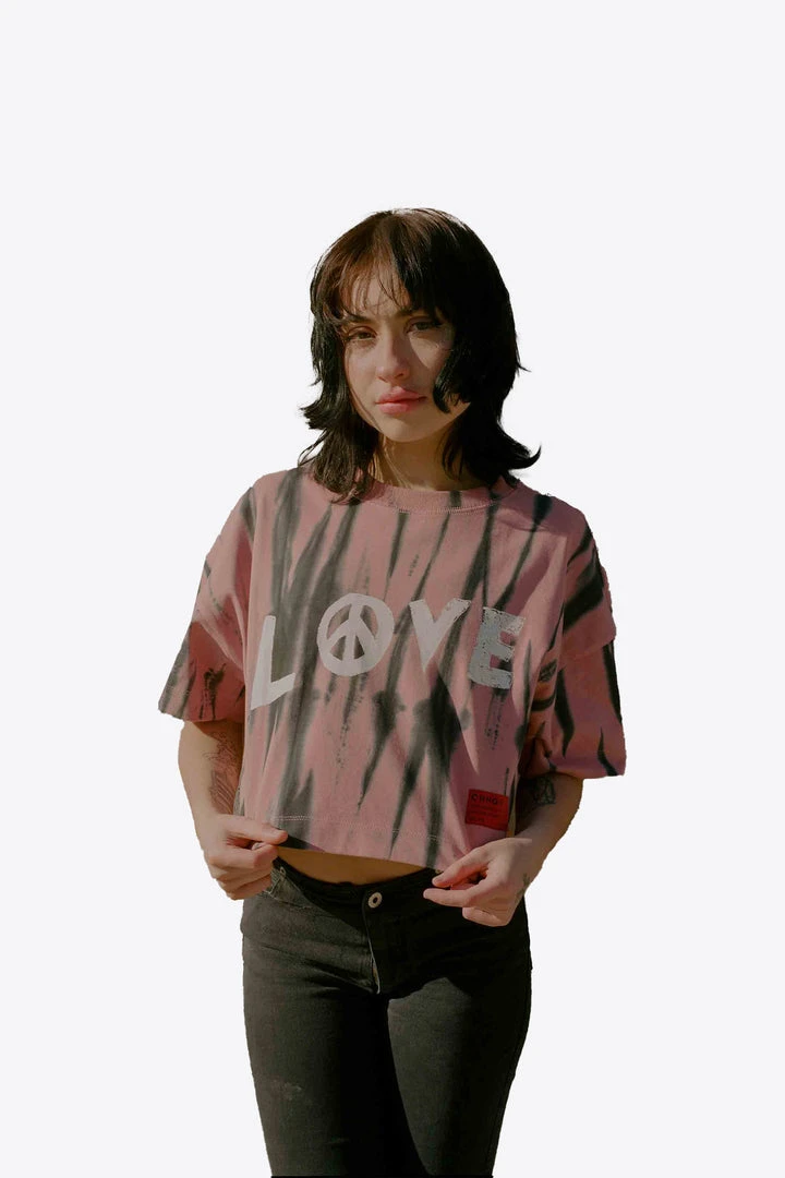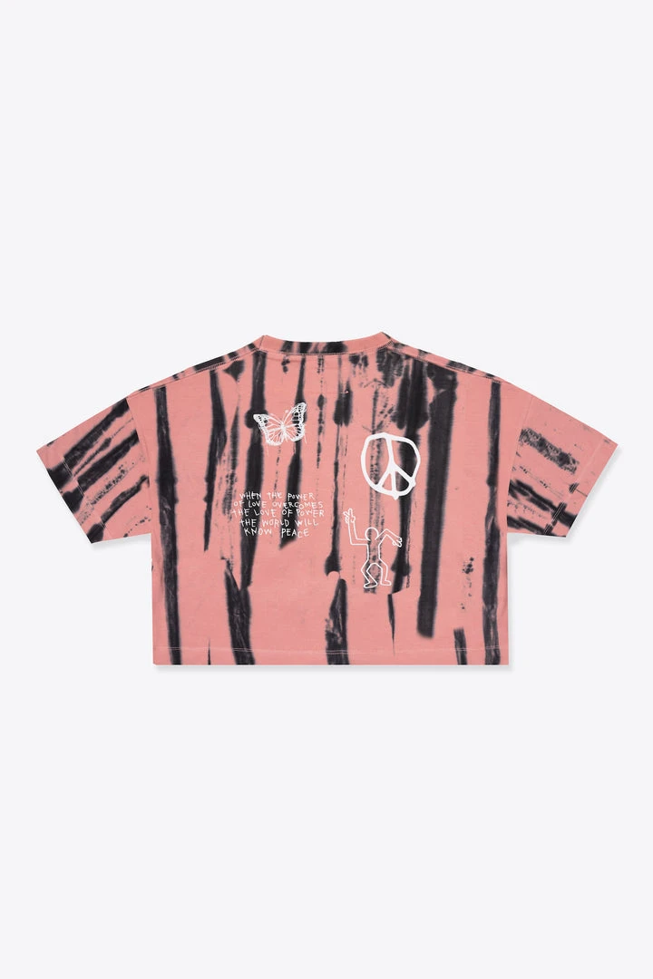 Sree Santhosh Best Selling Tie Dye Love Peace S/S Crop (Dusty Rose)