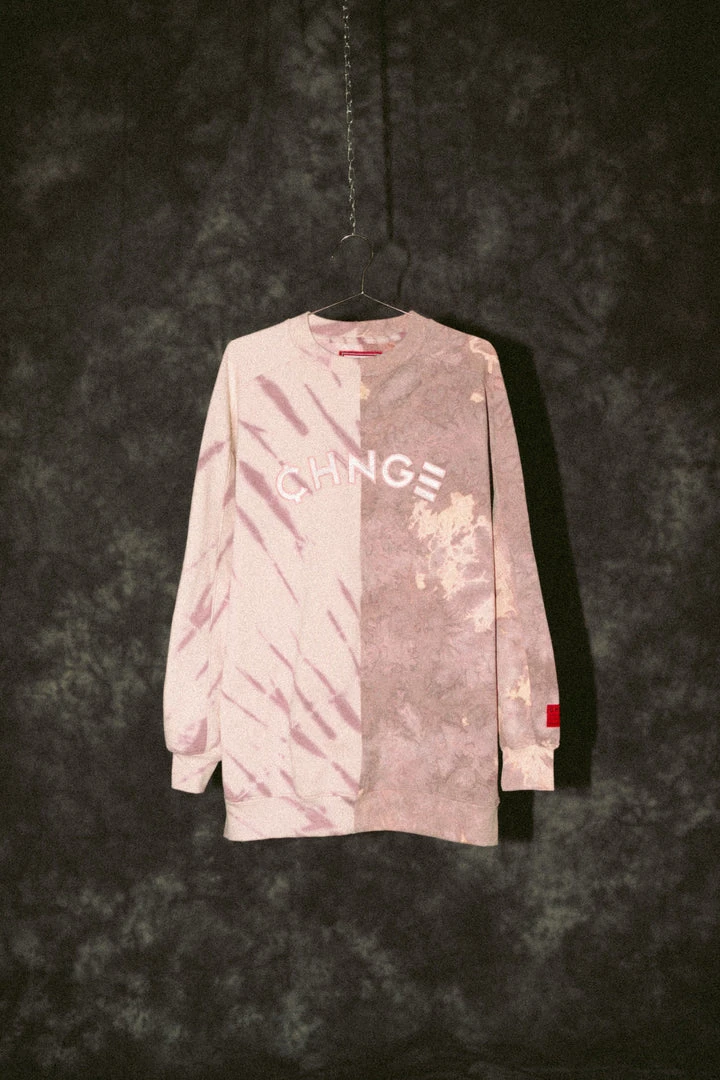 Sree Santhosh Chalk/Mauve Pieced CHNGE Logo Tie Dye Crewneck