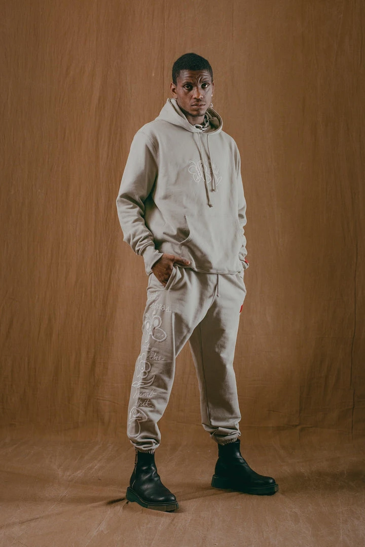 This garment is made from a 100%, GOTS certified, heavyweight, 14oz organic cotton fabric featuring a french terry finish.