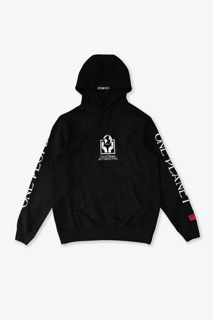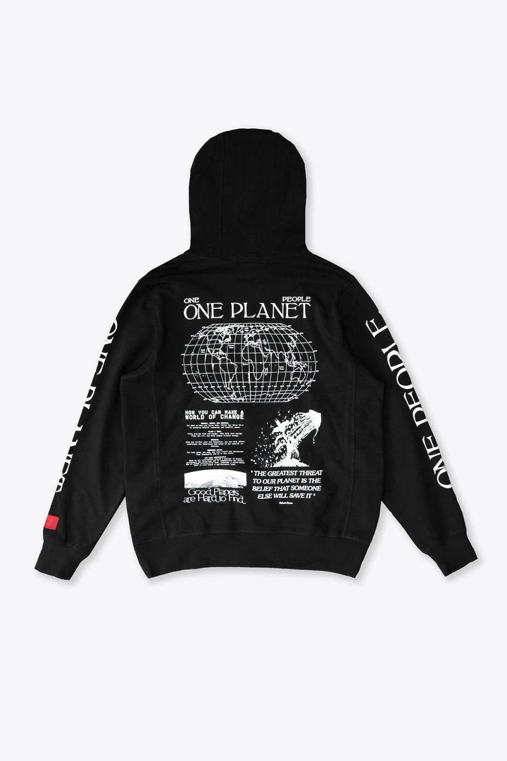 Made from 100% recycled materials, the fabric of this hoodie is derived from 17.2 plastic bottles and over 0.85 LB of recycled cotton fabric scraps.