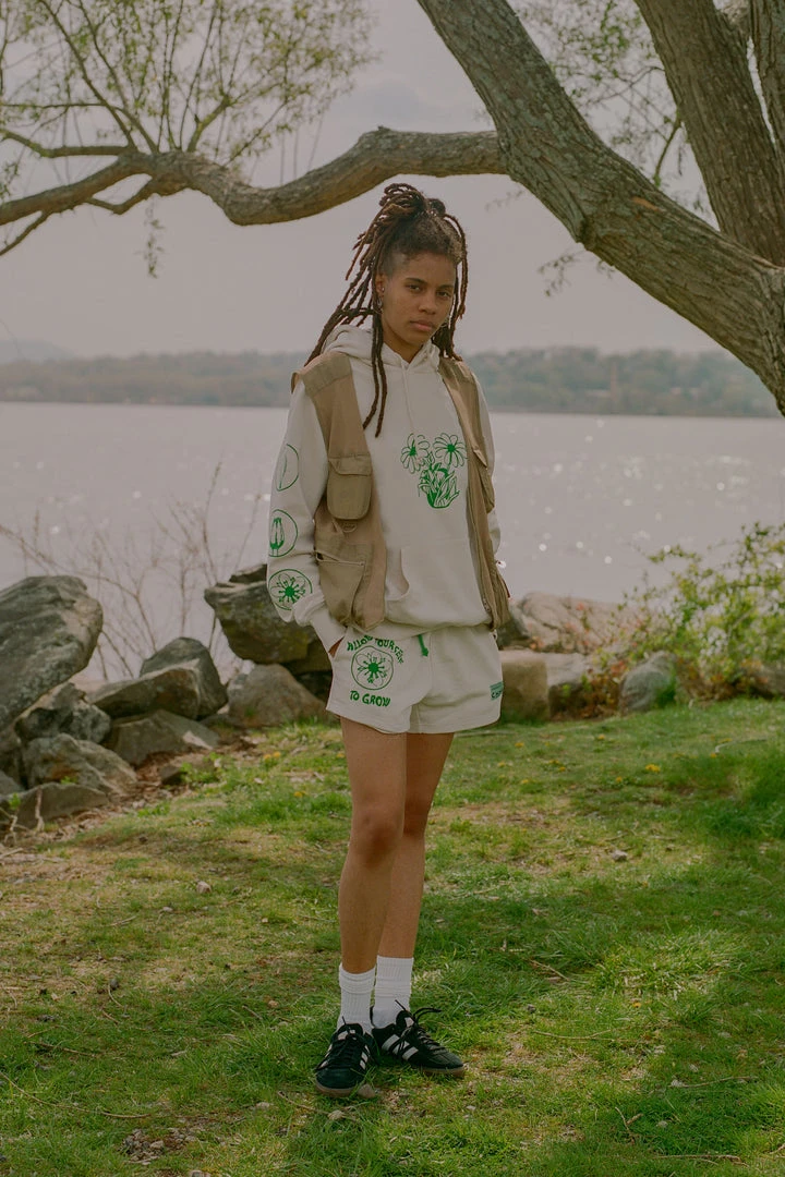 This garment is made from a 100%, GOTS certified, heavyweight, 14oz organic cotton fabric featuring a french terry finish.