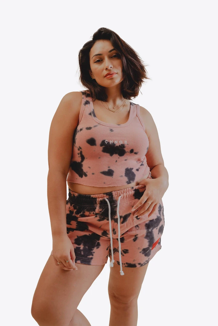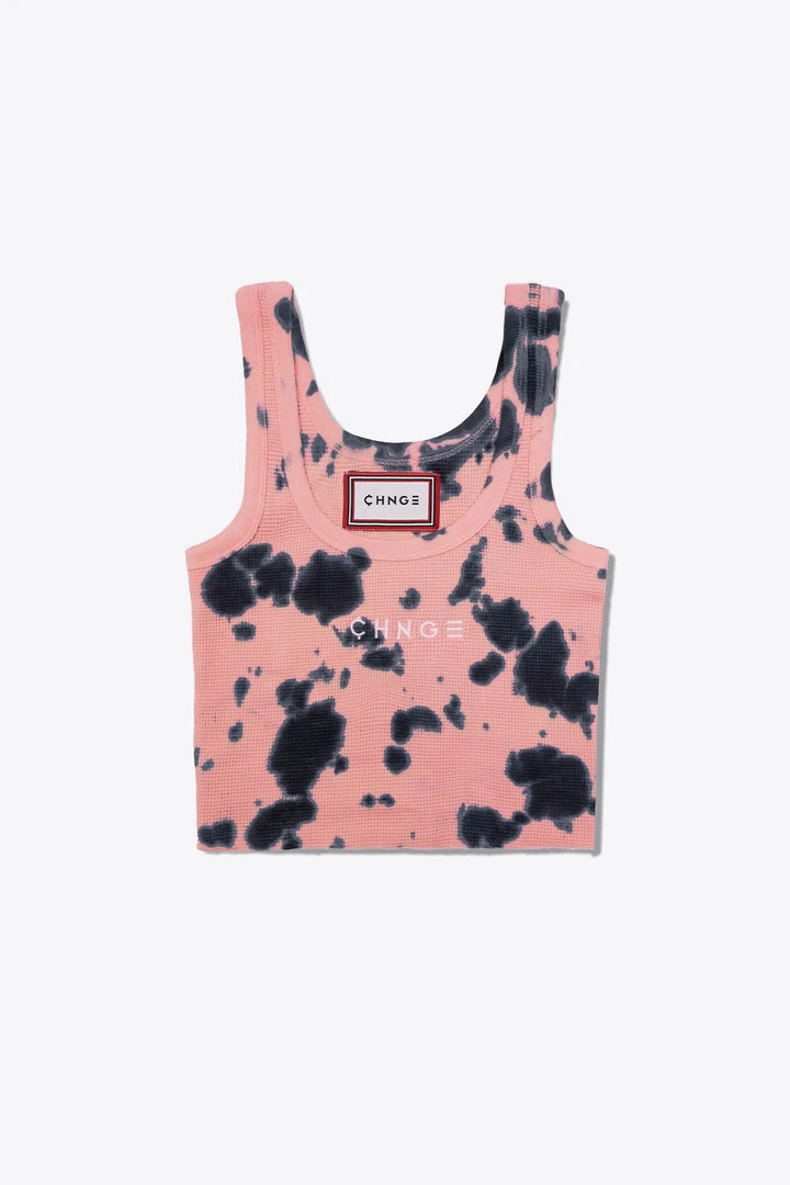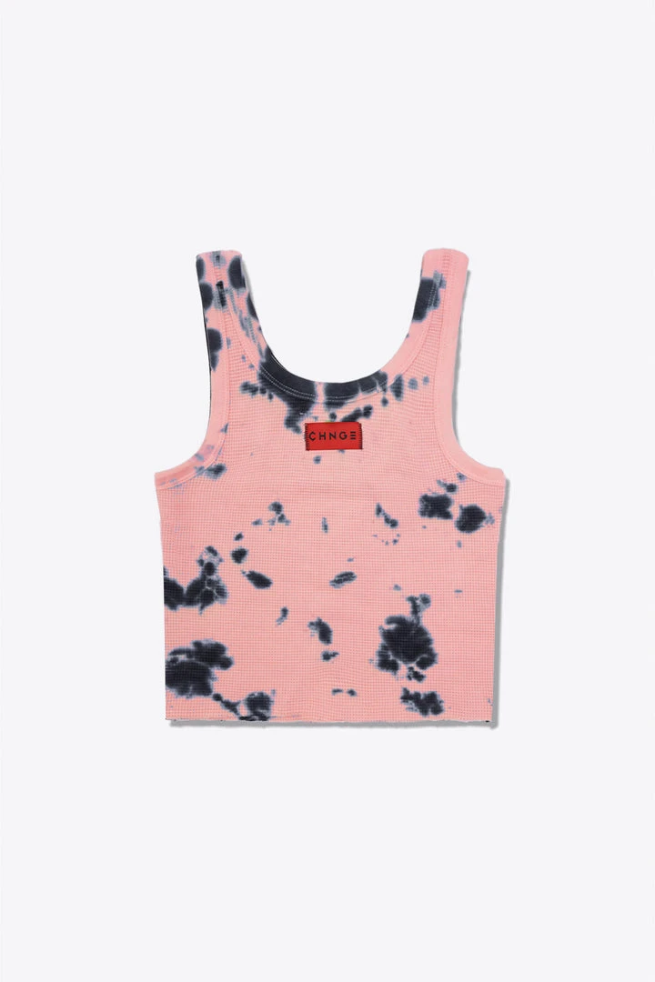 Sree Santhosh Splotch Tie Dye Logo Ribbed Tank (Dusty Rose)