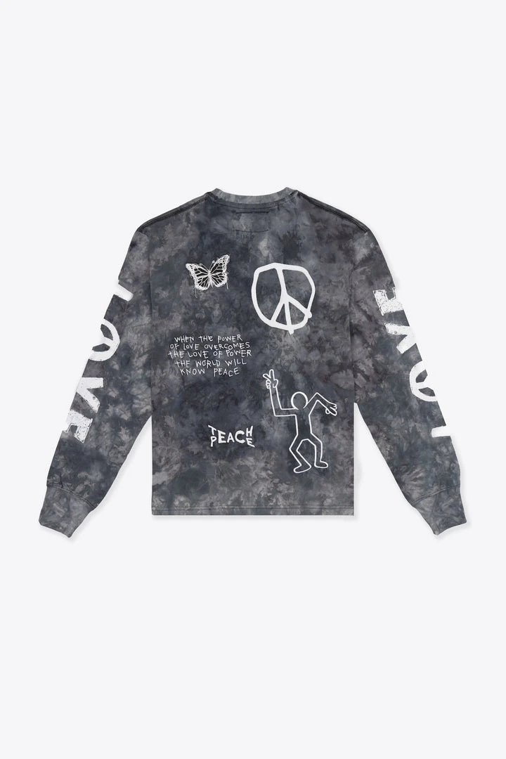 Sree Santhosh Tie Dye Love Peace Cuffed L/S T-Shirt (Chalk/Black)