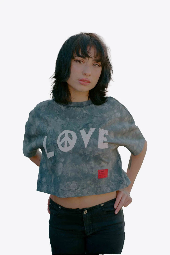 Sree Santhosh Tie Dye Love Peace S/S Crop (Black Marble)