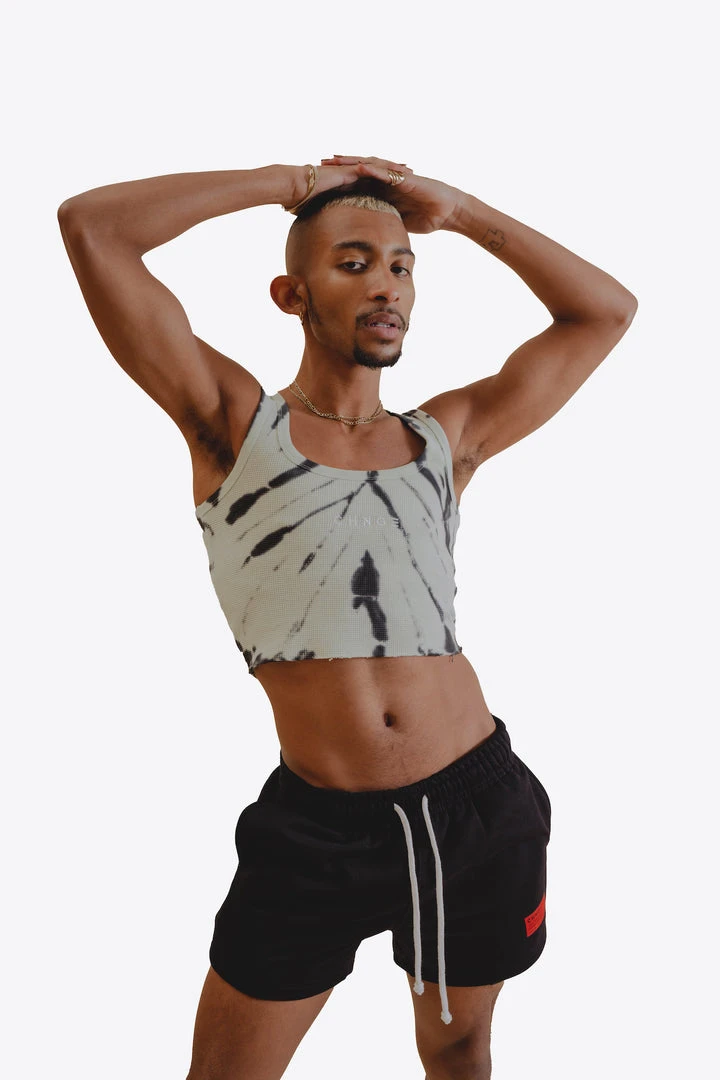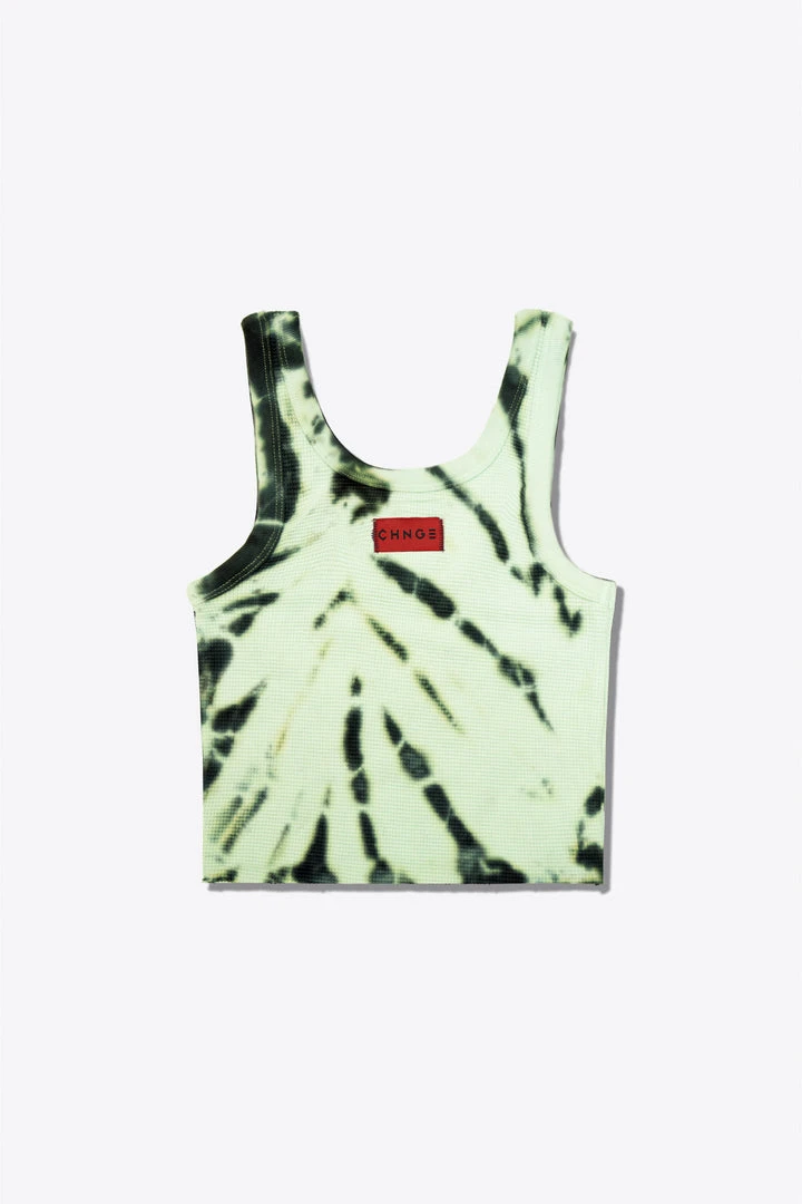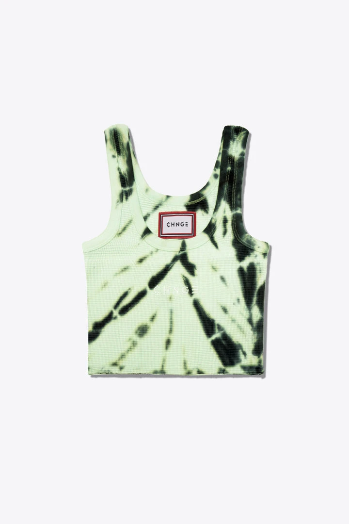 Sree Santhosh Tiger Stripe Tie Dye Logo Ribbed Tank (Lime)